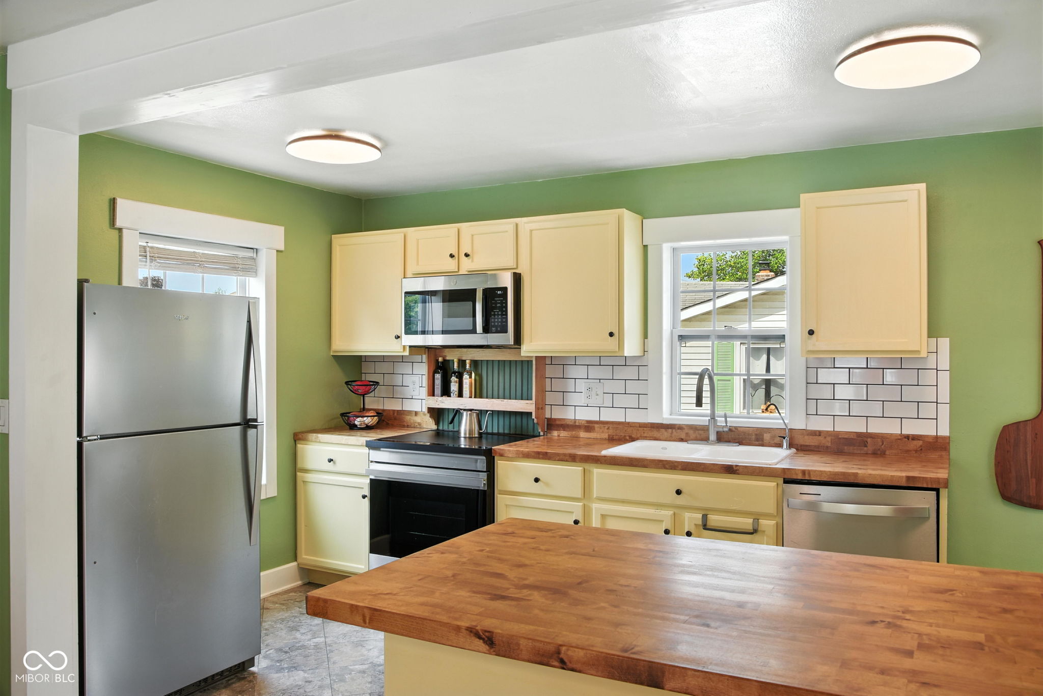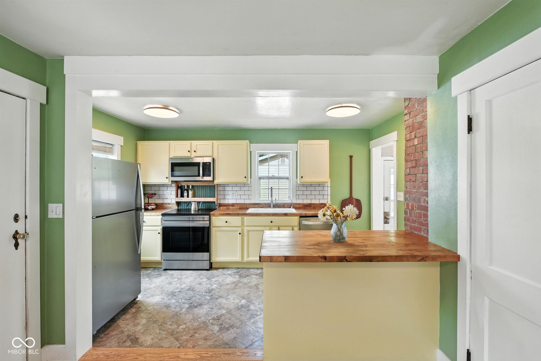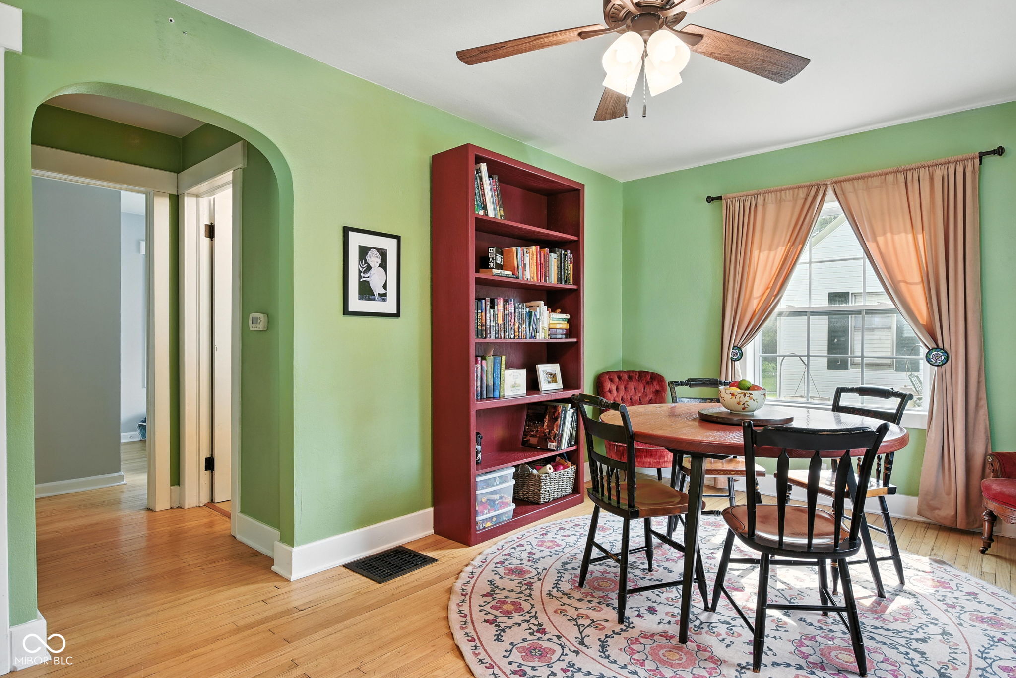 Welcome to this picture perfect cottage in the heart of Brownsburg! This 2bedroom, 1bath home blends classic character with thoughtful updates, offering a warm and inviting space inside and out. Step onto the charming front porch and into a light filled interior featuring hardwood floors, arched doorways, and custom touches throughout. The bright kitchen boasts butcher block countertops, subway tile backsplash, stainless steel appliances, and a spacious breakfast bar that opens to the dining area-perfect for everyday living or entertaining guests. The main level hosts two cozy bedrooms and an updated full bath with stylish tile work. A finished lower level provides flexible space for a home office, rec room, or hobby area. Outside, enjoy a fully fenced front yard, a long gravel drive, and a detached 2car garage. The backyard is ready for summer evenings with green space, mature trees, and room to play or garden. All this within walking distance to downtown Brownsburg's shops, dining, and parks, with quick access to major routes and top rated schools. Don't miss your chance to make this charming home yours!