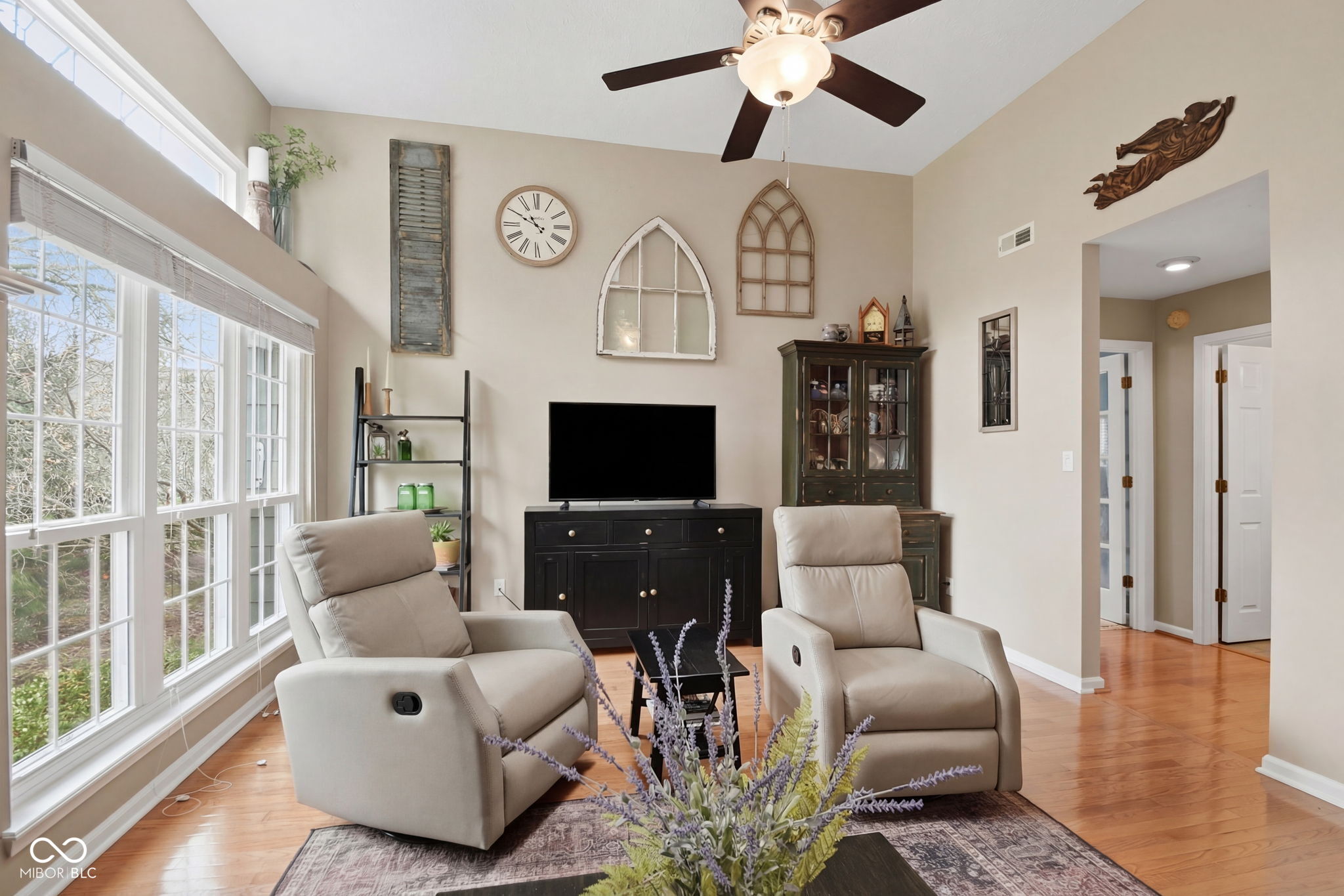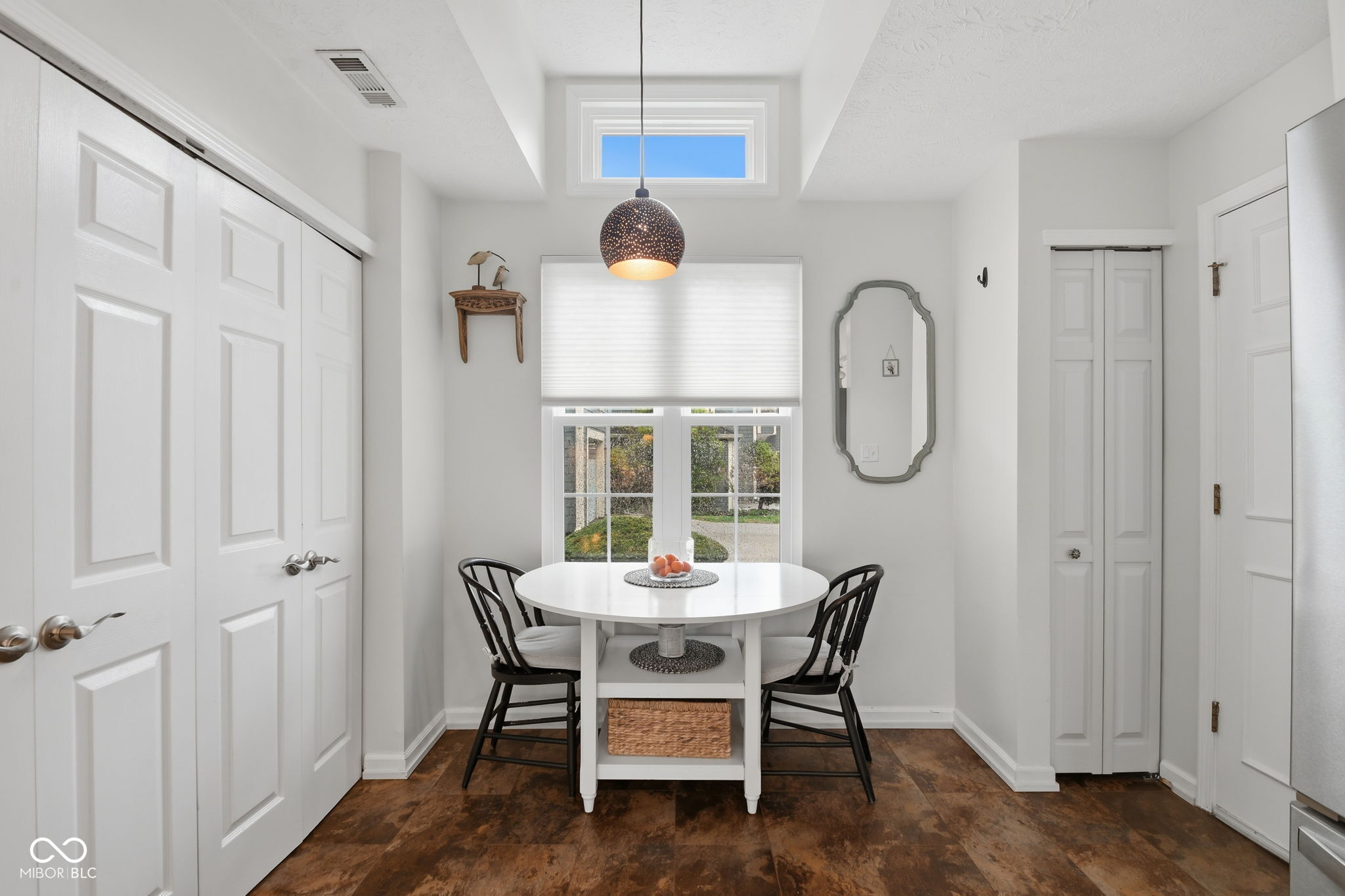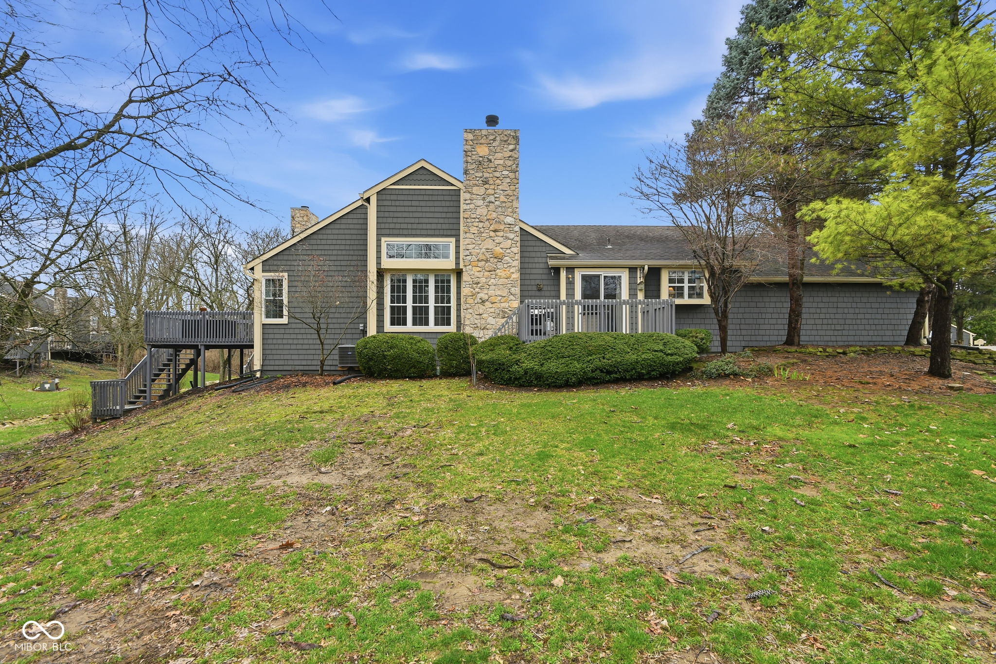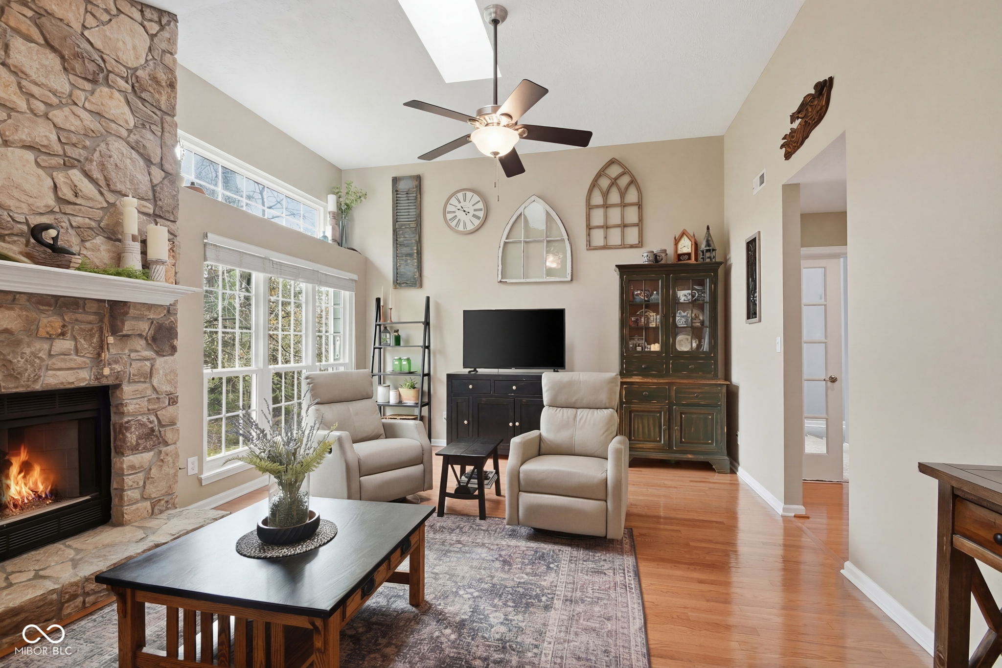 Rare one level end unit in the Cobblestone community near Eagle Creek. This immaculately maintained two bedroom, two bath home offers the convenience of single level living paired with architectural character and thoughtful updates throughout. The layout flows naturally from the living area into the dining and kitchen areas, creating a comfortable setting for both everyday living and entertaining. The kitchen offers bright cabinetry, stainless appliances, generous counter space, and new luxury vinyl flooring. Several meaningful improvements have already been completed, including new windows and sliding doors, a remodeled guest bathroom, new dishwasher, refrigerator, and hot water heater. The attached two car garage offers additional storage with built in cabinetry and durable epoxy style flooring. Two wood decks extend the living space outdoors and provide a quiet setting surrounded by a babbling brook and mature landscaping. Cobblestone residents enjoy access to the community pool and the convenience of nearby Eagle Creek Park, the reservoir, and quick access to I 465 and I 65. Guest parking located across the cul de sac adds additional convenience for visitors.
